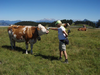 När vi vandrade ner till bergbanan igen stannade jag och pratade med en ko. Hon gillade att bli kliad.